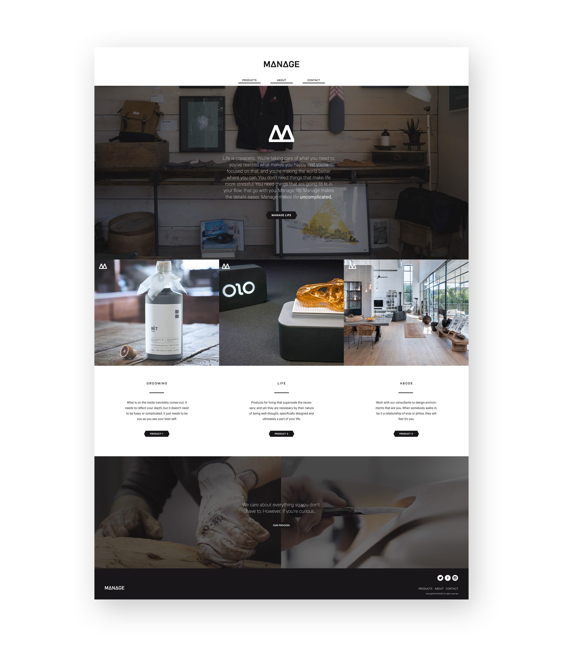 Designed logo and home page for site for men's high-end lifestyle products. BRANDING + WEBSITE