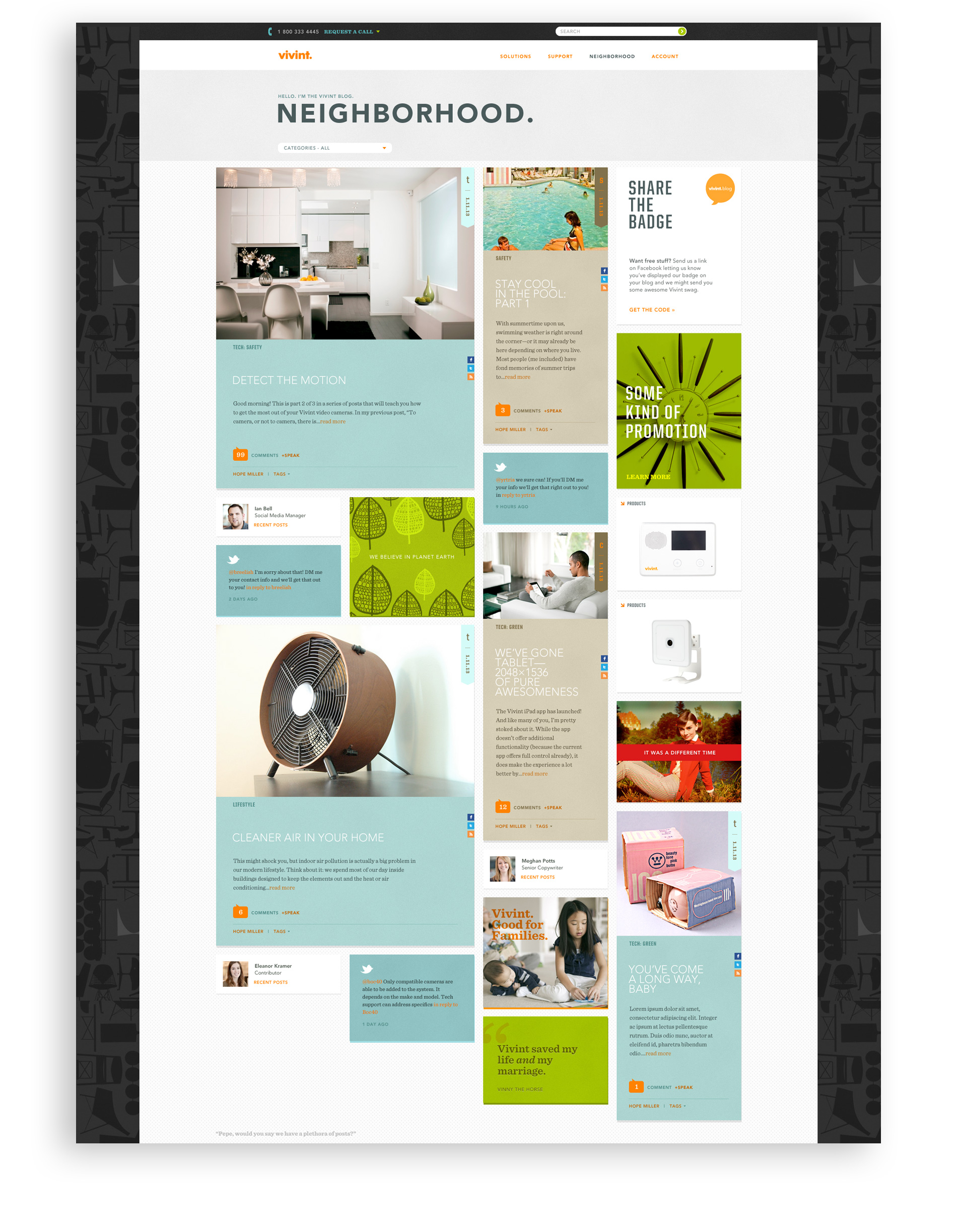 Designed concept for Vivint's screen hardware along with interface. Also designed a page to build brand and community awareness for Vivint users and for content marketing strategies.